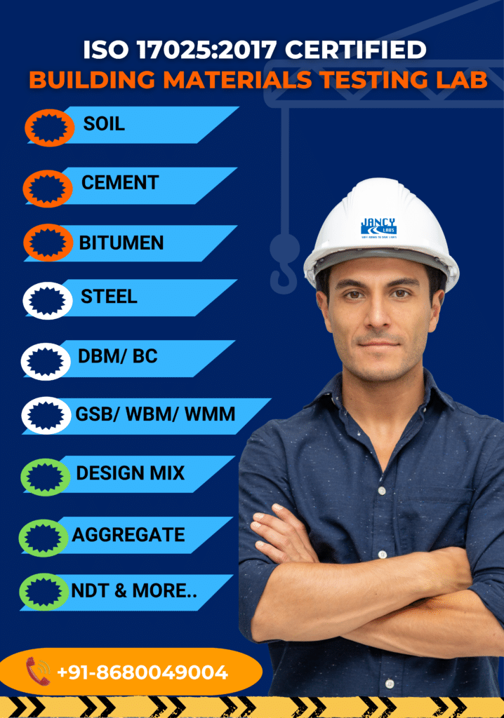 I highly recommend Jancy Labs! Their civil building materials testing are backed by ISO 17025:2017 certification and NABL accreditation. Excellent service, accurate results, and professional staff make them a top choice for construction related testing’s.