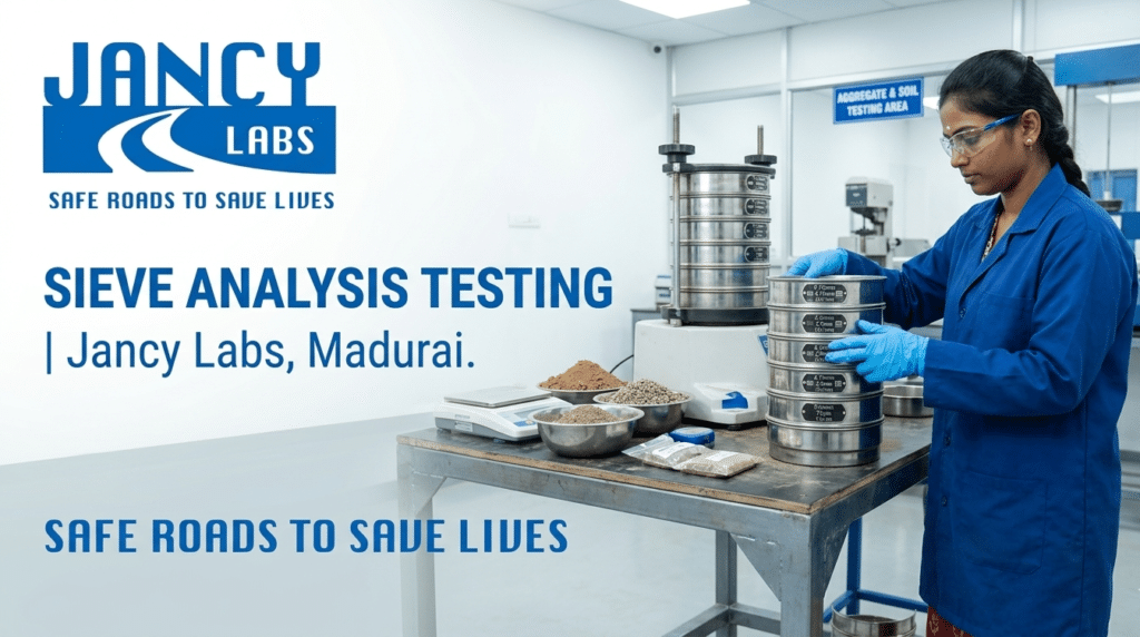 Your subgrade soil needs to be classified before a single layer of pavement goes down. Jancy Labs provides sieve analysis testing as per IS 2720 — fast, accurate, and NABL certified under TC-12176. Furthermore, our gradation reports are accepted by NHAI, PWD, and PMGSY without re-testing delays.